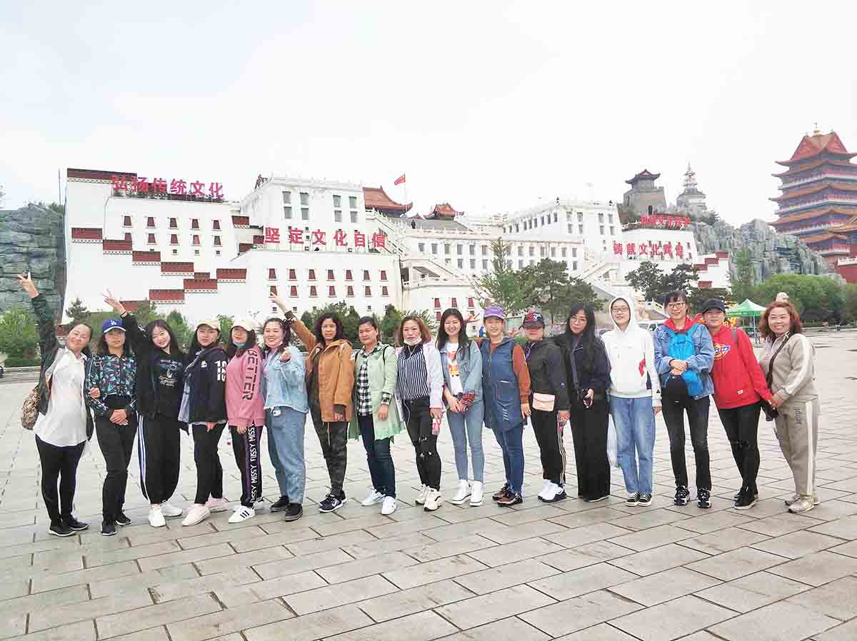 征服九華山頂峰之后,我們順勢而下,游覽了著名的慈海寺。學(xué)著周圍虔誠燒香拜佛的樣子,我們滿懷虔誠,感受著古代建筑的大氣與恢弘,也為自己許下美好的愿望。我們接著向小布達(dá)拉宮出發(fā)了。一路我們徒步前進(jìn),小白因?yàn)槠綍r鍛煉的少,在下山的時候走的太急,腳抽筋了,經(jīng)驗(yàn)豐富的李主管立刻上來按摩,還囑咐多甩一甩腿。多虧她的悉心照顧,小白的腳好多了,不影響繼續(xù)步行。小白打趣說“自從來到九華山,腰不疼了,腿不抽了,心也不跳了,感覺越來越年輕!”大家都笑了,氣氛十分活躍。大家心情舒暢,開心地笑著、玩著,互相交流著,活動氣氛熱烈,歡聲笑語聲在山林中飄蕩。沒多久我們就來到了小布達(dá)拉宮,領(lǐng)略西域文化的洗禮,感受別樣風(fēng)情。