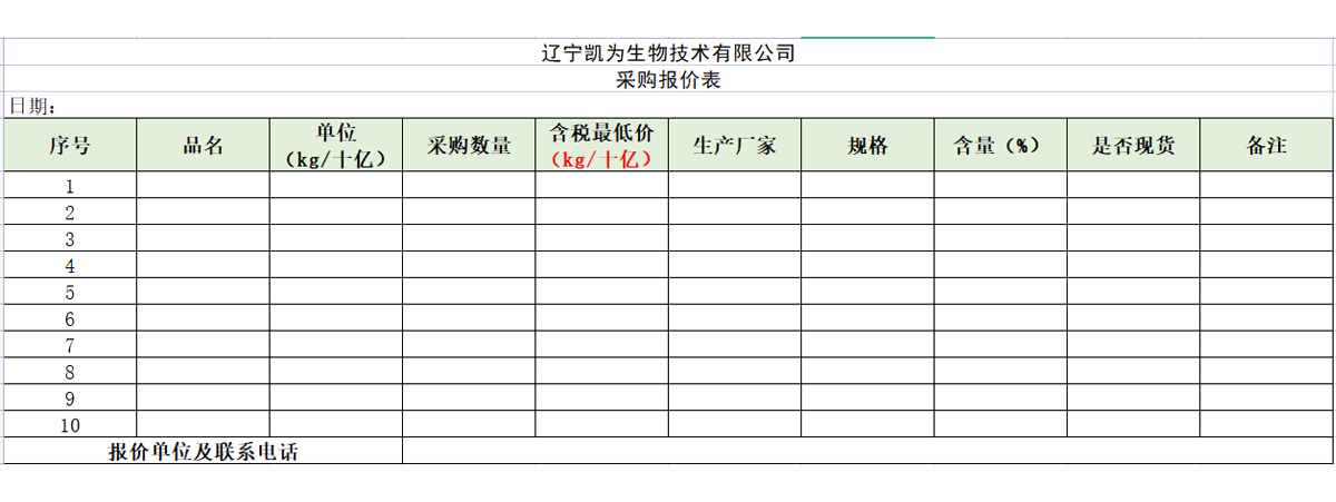遼寧凱為生物技術(shù)有限公司采購報(bào)價(jià)表